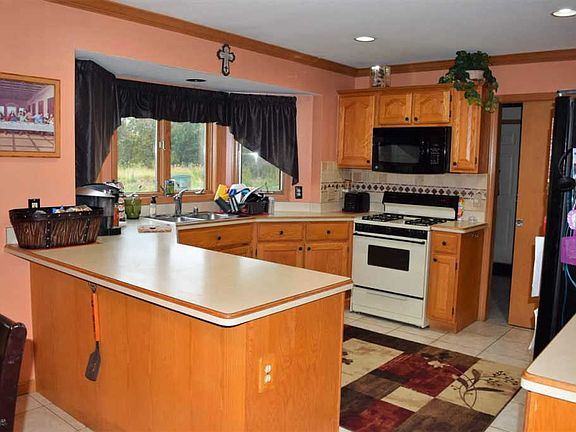 Great room ranch on 16.76 acres with pond and 5 car(52x22) pole barn and 2.5 car attached garage! Vaulted great room w/fireplace. Large eat in kitchen. Huge 27x14 3 season sunroom w/3-sided gas fireplace & wet bar. Finished basement with full bath that has jacuzzi tub w/body spray shower and sauna, also plenty of storage. Patio oasis with cabana that has electricity and sink, firepit and plenty of room to entertain. Pole barn with 2 car oversized door on side and separate oversized door in the back.