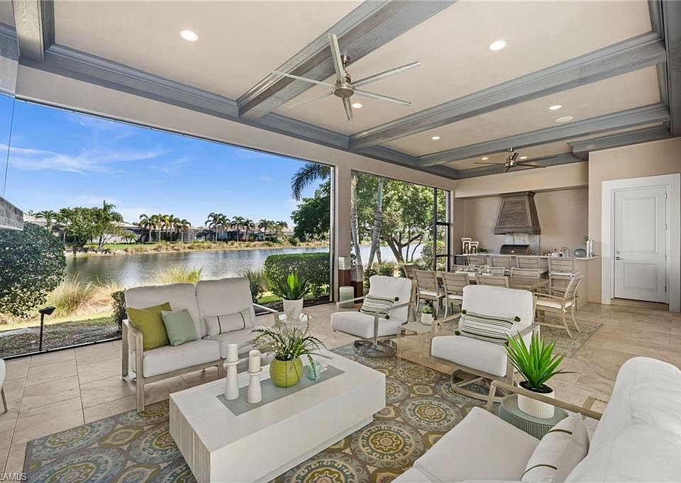 Where Lifestyle, Location & Luxury Converge. Discover refined coastal living in this designer residence in The Isles of Collier Preserve—recently recognized as one of Naples’ most sought-after communities. Professionally designed landscaping and ambient lighting introduce this elegant Papyrus model courtyard estate, where indoor and outdoor living blend seamlessly around a private saltwater pool and lanai oasis. Step through double doors into soaring 20-foot ceilings and an open, airy layout filled with natural light. The home’s elevated finishes include custom flooring, crown molding, solid-core paneled doors, and electronic hurricane-impact sliders that open to panoramic lake views framed by picture-window lanai screens. Designed for entertaining, the chef’s kitchen features a gas cooktop, walk-in pantry, and under-cabinet lighting—flowing effortlessly to the great room and outdoor kitchen bar. The lanai offers a tranquil retreat with heated saltwater pool, cascading waterfall, modern tiki lighting, and a stone-front fireplace, all enhanced by a Sonos sound system with indoor/outdoor speakers. The primary suite is a private sanctuary with French doors, coffered ceilings, dual walk-in closets (with built-ins, seating, ironing board, and safe), and a spa-inspired bath featuring dual sinks, a large walk-through shower with dual heads, and decorative walls. A guest ensuite includes custom blackout shades, while the detached casita offers an additional full suite with bath and walk-in closet—ideal for visitors or extended stays. Function meets design with an air-conditioned, epoxy-floored two-car garage, plus a separate one-car garage with slat-wall and bike storage. Residents enjoy award-winning resort amenities at The Isles Club—a resort and lap pool, fitness center, pickleball and tennis courts, bocce, pet park, and The Overlook Bar & Grill overlooking scenic waterways. With miles of kayak and hiking trails and convenient access to downtown Naples, 5th Avenue, Rookery Bay, and the Naples Botanical Garden, this home offers the perfect balance of luxury, nature, and proximity to everything Naples has to offer.