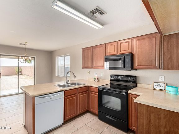 This move-in ready home sits on a desirable corner lot, bordering a lush greenbelt with only one neighbor for added privacy. This two-story home offers peace of mind with a brand-new HVAC system (2024) and a freshly painted exterior (2024). Inside, you'll find an open and spacious main level, perfect for gatherings, while all bedrooms and the laundry room are conveniently located upstairs. Clean and well cared for, this home is ready for your personal touch! Just steps away, the community offers a children's playground, soccer field, basketball court—something for everyone to enjoy! This property qualifies for a USDA loan and Arizona Is Home Financing Program.