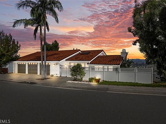 Perched on top of it all, this property boasts unobstructed panoramic city views that stretch as far as the eye can see. The elevated vantage point provides an awe-inspiring backdrop for daily living and grand entertaining, offering a constant reminder of the beauty of the surrounding landscape. Nestled within the serene surroundings of Anaheim Hills, this meticulously remodeled 4-bedroom, 3.5-bathroom home stands as a testament to luxury living at its finest. From the thoughtfully designed open floor plan to the top-of-the-line upgrades and panoramic city views, every aspect of this property reflects an unparalleled level of sophistication and comfort. Step inside and be welcomed by a spacious open floor plan that effortlessly blends elegance with functionality. The intricate wrought iron railings add a touch of architectural charm while allowing for a seamless flow between living spaces. The great room, bathed in natural light, invites gatherings and celebrations, complete with a large patio that extends the entertainment area outdoors. At the heart of this home lies the chef's kitchen, a culinary masterpiece adorned with the finest upgrades. Quartz counters exude sophistication while providing ample workspace, and new stainless steel appliances are complemented by modern convenience and style. This kitchen not only caters to culinary enthusiasts but also serves as a hub for social interaction and memorable moments. Descending to the lower level, you'll find a sanctuary of comfort in the four bedrooms and three bathrooms. The primary master bedroom boasts a spacious cedar-lined walk-in closet, a generously sized walk-in shower all done in printed tiles, and a private patio with panoramic views—a true haven of relaxation. This exceptional property continues to impress with its practical amenities. A 3-car garage featuring epoxy floors not only provides secure parking but also showcases attention to detail. An oversized laundry room adds functionality to daily routines, further enhancing the ease of living within this elegant residence. This home has it all with a close proximity to the reservoir, biking and hiking and some of the best schools of North County!