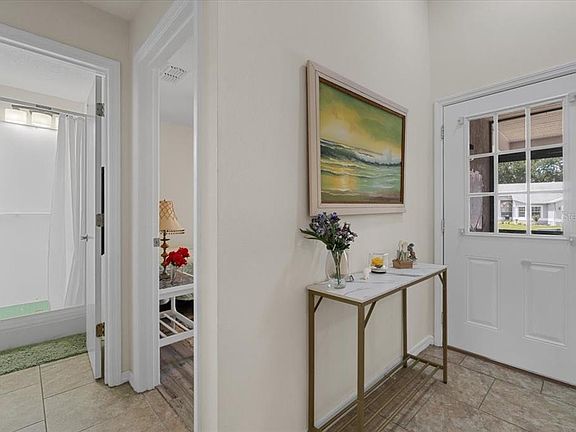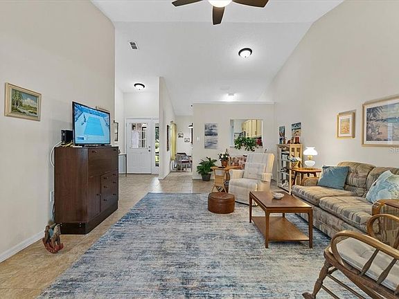 The best of both worlds, this sweet villa is easy to maintain, and at the same time feels wonderfully spacious and open with lots of light and high ceilings. Add an extra 112 square feet with the interiorized heated/airconditioned lanai with windows and a lovely awning-covered patio just outside. Completely tiled throughout, the floors are cool and allergen-free. There are two large bedrooms, each with its own bathroom, a nice eat-in kitchen with a pass-through to the living/dining room, plus a shaded dry place to park your car or golf cart in your private garage. Recently renovated, this home’s HVAC system is new (2025) with a thorough duct cleaning as well (buyer also gets a transferrable 3 year labor, 10 year parts warranty), the roof is from March of 2024, the hot water heater is from 2013, both bedrooms and bathrooms were renovated in 2024/2025, the kitchen was remodeled 2025, the whole electrical system was updated and refreshed in 2025, the backyard awning was refreshed in 2025, a drinking water filtration system was installed at the kitchen sink in 2025, and brand new gutters were installed in 2025. All the updates and maintenance have been handled for you so you can relax and enjoy your new home and neighborhood. And what a neighborhood! Living in Sandpiper Golf and Country Club is simply joyous! We have a club for every card game you can think of and some you might never have heard of, even. There are two pools, two hot tubs, a sauna, pickleball, tennis, cornhole, shuffleboard (there's actually a really competitive team here, BTW), billiards, gas grills and picnic table area with pavers, Community Clubhouse, Recreation Center, gym, crafting club, bowling club, travel club, regular dances and gatherings, annual men's lunch, annual women's lunch, weekly Bingo, pancake breakfast events, puzzle room, yoga, strength training, Pilates, stretch class, water volleyball, water aerobics, you name it. Oh, we DO have fun! Come join us, we'd love to have you as our new neighbor!