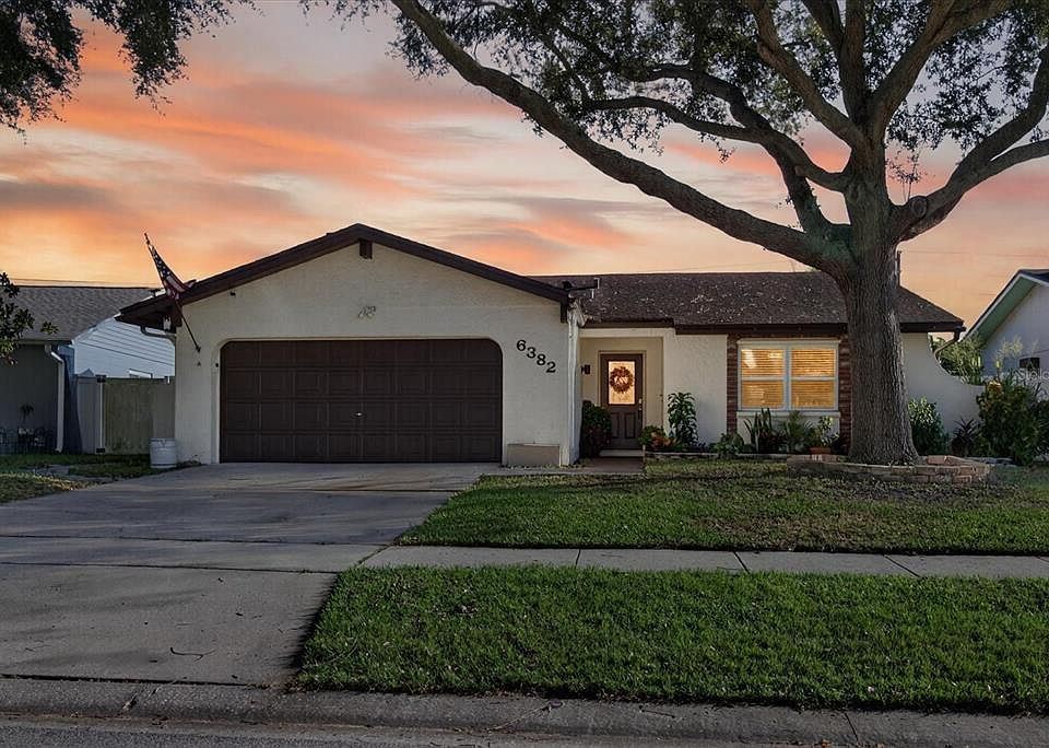 Welcome to your own private oasis in the heart of Pinellas Park! This beautifully maintained 2-bedroom, 2-bathroom home with a 2-car garage offers the perfect blend of comfort, style, and outdoor living. Step inside to find a bright, open layout that’s perfect for entertaining or relaxing at home. The spacious living area features a cozy wood-burning fireplace, creating the perfect spot for relaxing evenings or gathering with friends and family. The living area flows seamlessly into the kitchen and dining spaces, offering a warm and inviting atmosphere. Both bedrooms feature brand-new wood flooring, adding a touch of elegance and warmth. The primary suite includes an en suite bath with direct access to the pool area, providing the ultimate convenience for a quick dip or easy outdoor entertaining. Step outside and discover what makes this home truly special — your very own backyard retreat! Enjoy Florida living at its finest with a resurfaced saltwater pool, a tropical tiki bar, and a screened-in porch surrounded by lush, tropical landscaping that creates a sense of privacy and tranquility. The owner-owned solar panels and whole-house water softener system provide added comfort, efficiency, and long-term savings.. Located in a desirable Pinellas Park neighborhood, this home is just minutes from shopping, dining, parks, and some of Florida’s most beautiful beaches. Whether you’re hosting friends poolside or enjoying a quiet evening under the stars, this home offers the perfect balance of relaxation and fun.