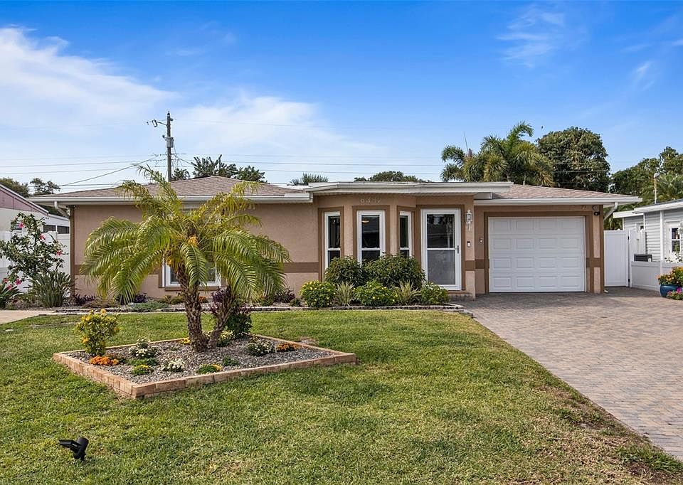 Welcome to this beautiful, fully updated home located in charming Kenneth City. This stunning property features 3 spacious bedrooms, 2 modern bathrooms, and a luxurious pool perfect for outdoor relaxation and entertaining. Upon entering the home, you'll be greeted by an inviting and spacious living room that flows seamlessly into the dining area and kitchen. The kitchen is fully equipped with modern appliances, ample counter space, and plenty of storage cabinets, making it perfect for preparing delicious meals. The master bedroom is a true oasis, with an ensuite bathroom. The two additional bedrooms are perfect for guests, children, or home offices. Step outside and you'll find your very own private oasis, complete with a sparkling pool and built-in sound system, perfect for cooling off on hot summer days or enjoying a relaxing evening under the stars. The backyard is fully fenced for privacy, and there is plenty of space for outdoor dining, barbecues, and entertaining. This home is just a short distance from beautiful white sand beaches, schools, and shopping. With its modern amenities, beautiful pool, and convenient location, this home is the perfect place for you and your family to call home.
