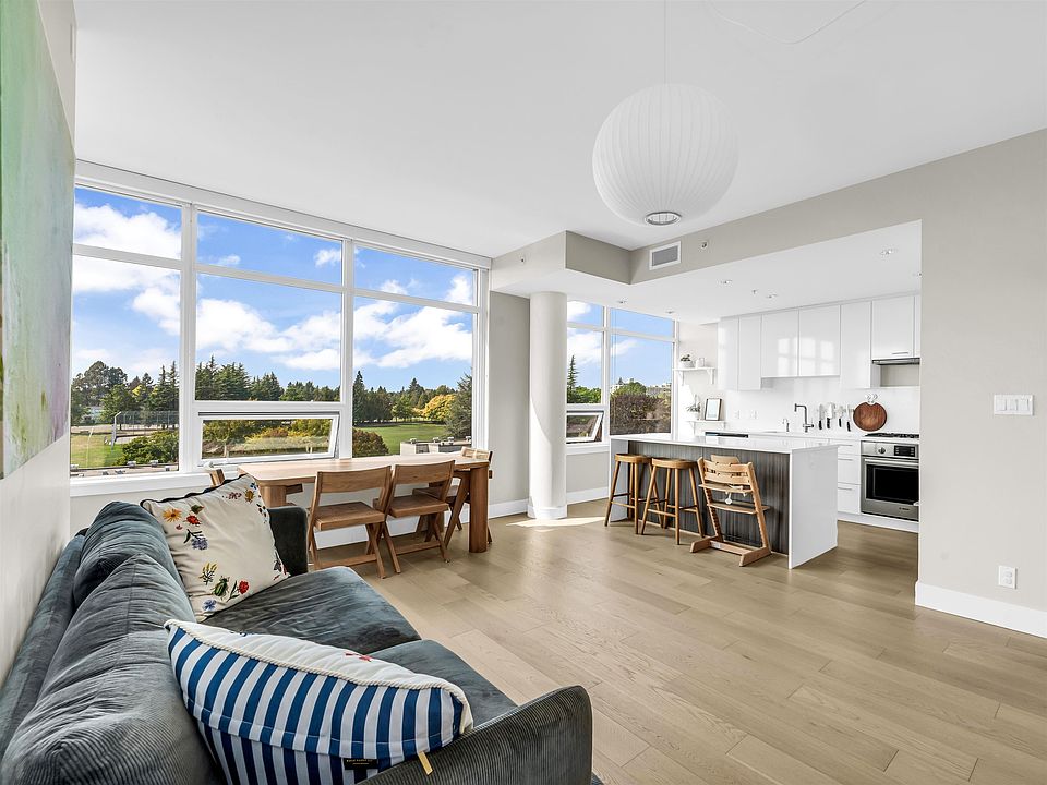Welcome to the private Boutique Forty Nine West. This bright & airy, spacious & functional corner south-east exposure 3 bedroom, 2 bath home has everything you wanted.The architecture showcases contemporary West Coast style, built to LEED Gold Standards, & includes air-conditioning, 9ft ceilings, brand new engineered hardwood floor, quartz countertop & backsplash, & sleek stainless steel appliances. Located just across from Langara-49th Ave Canada Line Station, 5 minute walk from Oakridge Centre, walking distance to YMCA to nearby parks including Tisdall Park, Columbia Park & Cambie Park. Excellent School Catchments: Annie B. Jamieson Elementary/Eric Hamber Secondary School. Bonus :2 parking, 1 storage locker is included (Open House Sept 20th 2:00-4:00pm)