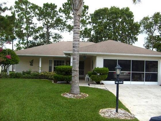 GORGEOUS BUTTONWOOD with upgraded kitchen cabinets,counter, newer dishwasher, & newer refrigerator.This beauty features ceramic tile in all of the right places with sliding glass doors from the dining room & florida room into a very large lanai with screens & windows.The rooms are open, light, bright and cheery. You'll love the large front porch and the curb appeal. Located in beautiful Timber Pines, a 55+ community with 4 golf courses,tennis courts,swimming pools,residents' activity center, performing arts center,24 hour security, & private country club.SELLER WILL GIVE A $ 2000.00 CARPET ALLOWANCE !!!