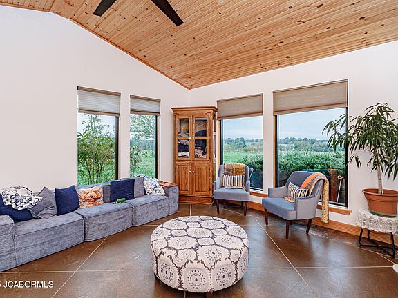 Check out this beautiful country setting home that sits on over two acres, is close to town and offers main level living!! Walking to the front door you will love the front deck or covered entry. Opening the front door you will love all the windows throughout, custom wood ceiling, stamped concrete floors, open floor plan, split bedroom design and so much more. The primary bedroom offers a large bedroom, huge walk in closet, a large bathroom and walk out to the covered patio. The brand new kitchen is a chefs dream w/stylish navy blue cabinets, beautiful counter tops and stainless steel appliances. Right off the laundry room, you will find a storage room for all your extra stuff and the oversized garage allows for extra storage too. Unwind on the covered patio that overlooks the neighboring farm.