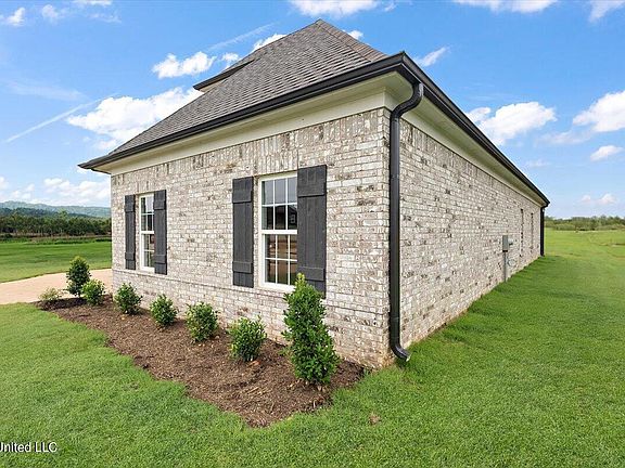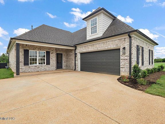 LAKE CORMORANT SCHOOLS! Sunflower floor plan in the newest Walls subdivision, Long Branch! Beautiful carriage load floor plan with front porch sitting! As you enter the front door you are welcomed with a large family room with cozy fireplace. Divided by a breakfast bar is the kitchen with a great view of the back yard and living area. The kitchen features granite countertops, stainless steel appliances, kitchen island and custom painted cabinets! Just off the kitchen is a nice size covered pack porch to enjoy the nice country setting of Long Branch! Back off of the living room you will notice the split floor plan with 2 bedrooms and bath on one side of the house and the primary bedroom and bath on the other side. The primary bathroom has double vanity sinks, walk in shower, jetted jaccuzi tub and two walk in closets!