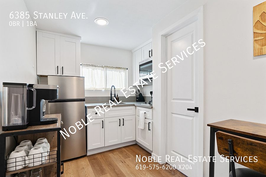 1395.00 No Pets No Yes Deposit: $1395 **On Approved Credit** Newly Built Studio Near SDSU Move-In Ready! Vacant and ready to show! This stunning, newly constructed studio offers modern living in a prime central location near SDSU, shopping, dining, and freeway access. Step inside to find sleek laminate wood flooring, stylish recessed lighting, and a spacious walk-in closet for all your storage needs. The upgraded kitchen is equipped with a refrigerator, gas range, and microwave, while the new mini-split A/C unit keeps the space comfortable year-round. This ADU is attached to the main home at 6383 Stanley Ave. Street parking only. Only indoor cats, no other pets permitted. 1-Year Lease | Water is 20% of the total bill & Trash is already included!! Don't miss your chance to call this beautiful studio homeschedule your private showing today! (**If no showtimes are available, don't worry! Go ahead and submit your info and our automated system will let you know when showtimes become available). Also, please be sure to click on the 'Apply Now' button to see all of our requirements and how we work! SS 10/14/25 eb No Noble Real Estate Services 1371 Presioca St. Spring Valley CA 91977 Yolanda, Emily, or Alex Kitchen Laminate Flooring Privacy Stove