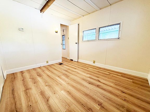 Tucked away in Crestview Mobile Home Park, an all ages, pet-friendly community, this updated mobile home offers a simple, yet comfortable life. Freshly painted inside and out, the home features new lvp flooring, 2 bedrooms with built-in desks, and a clean, refreshed bathroom with ample storage. The kitchen is newly updated, with a refrigerator and a brand-new gas range. It flows easily into the living and dining space, flooded with natural light. An attached 224 sq ft enclosed room serves as versatile space ideal for a home office or a private retreat. Outside, the backyard offers a quiet patio, perfect for taking in the surrounding nature. A spacious yard, complete with a lawn and flower bed, trees and a mature rose bush. There's also a handy storage shed for your tools and belongings, and a covered, paved driveway for two cars. For your convenience, this home includes a washer and dryer, making laundry easy and accessible. With central heat, an evaporative cooler, and a ceiling fan, comfort is assured year-round. Just a short walk to the community clubhouse, this home strikes the right balance between solitude and the option to be part of a community. A home that provides everything you need, with space to live life as it should be. Current space rent: $995