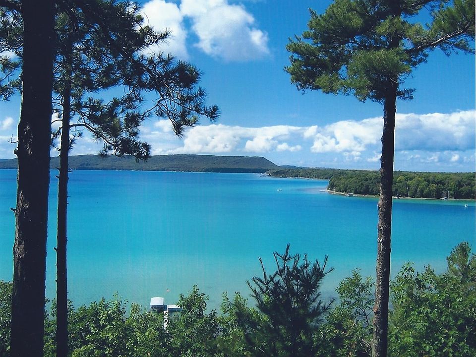 If you are looking for a spectacular view of Glen Lake, Lake Michigan and South Manitou Island, while still having access to 100 feet of frontage on Glen Lake, this is it! Upstairs has large living/dining room combination with cathedral ceiling, kitchen, bedroom, and 1/2 bath. Lower level includes 2 bedrooms, full bath, laundry/recreation room. Large upper and lower decks. Large picture windows on lake side. Lot size is 1.29 acres, which extends across M675. New paint, inside and out, new roof, new Anderson doorwall upstairs, new blinds, all new flooring. Easy access to main level of house from street using bridge to main deck. Dock and Shore Station negotiable. Owners will build new stairway to beach in spring of 2017. Will participate with brokers.