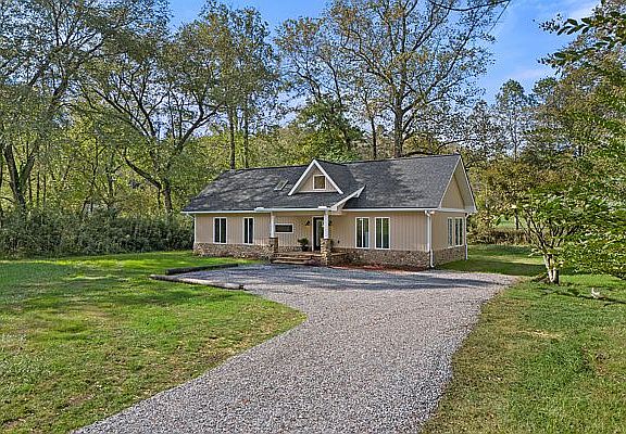 Step outside onto flagstone porches and steps, all built on a creek stone foundation, where the gentle flow of water and natural scenery create a peaceful backdrop.