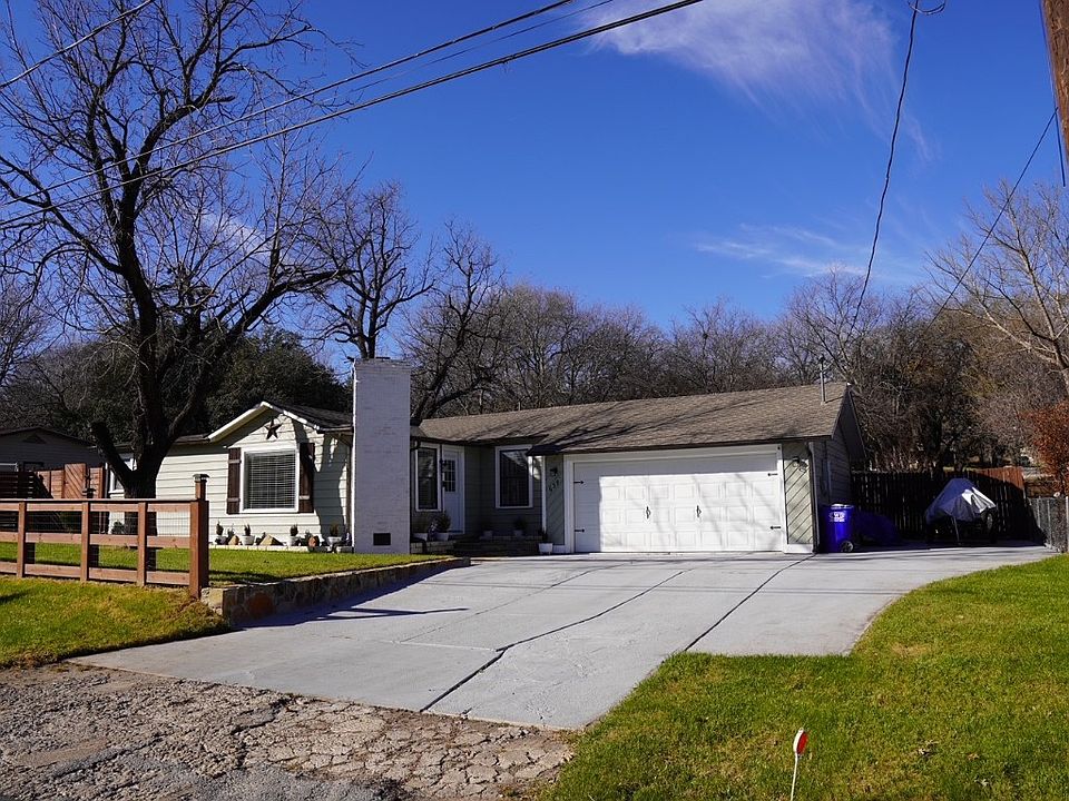 Located just minutes from Eagle Mountain Lake. This beautiful 3 bedroom, 1 bath home sits on an oversized lot with a 2 car garage in a quiet neighborhood. Wood beams ceiling in living room with herringbone brick flooring, and a wood burning fireplace. White cabinets with brushed nickel hardware and farmhouse sink in kitchen. Dining room features wood flooring with a wood burning fireplace. Bonus!! Completely updated detached studio apartment in back of home with 1 bedroom, 1 bath, 264 sqft. Extra concrete driveway on side of garage for your boat. You will fall in love with the outdoor space that features 2 covered patios, fire pit, and play area for your family to enjoy.