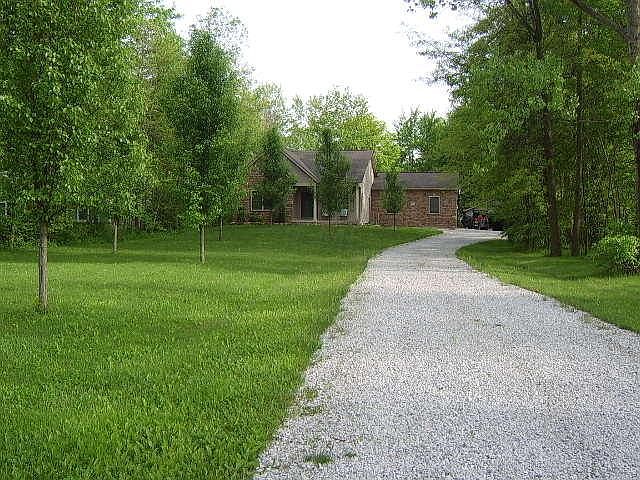 Lovely, private, ranch on 1 acre tree lined lot! (both sides and rear are tree lined) Finished walk-out LL with family room, bedroom and full bath! Walk-out to patio and nice yard! Master suite with large walk-in closet; shower; private commode; and double bowl sink. Open cathedraled great room, dining area, and kitchen with SS appliances incl trash compactor; under cabinet lighting; and huge walk-in pantry! Great room, dining area and kitchen all have hardwood floors. First floor laundry! First floor in-law room with private entry or LL in-law suite. Sellers used first floor in-law room as office. Large patio off kitchen. Attached 2 car garage with opener and svc door as well as detached 2 car/out building with opener; svc door; and 220v electric. Community offers park, pool and tennis!