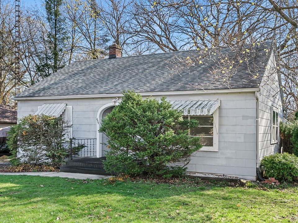 Charming 2-bedroom 2 bath bungalow nicely located on a low traffic street. Fresh paint, Fenced yard. The generous yard backs up to a wooded area and overlooks a creek. Hardwood floors, stainless appliances, and some newer windows. Enjoy your morning tea or coffee on the sun porch at the rear of the home. This has a partially finished basement for added living area and additional storage. Clean detached 1 car garage has tongue and groove panel finish. Roof is approx 15 years old. Sold "as is"
