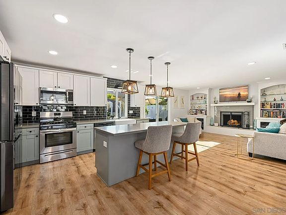 Nestled in the desirable Oak Hills neighborhood, this completely remodeled single-level 4-bedroom, 2-bath home offers the perfect balance of modern style, energy efficiency (paid solar), and everyday comfort! Step inside to an open-concept layout designed for both functionality and flow, ideal for families and entertainers alike. At the heart of the home is a stunning, upgraded kitchen featuring shaker-style cabinetry, a spacious center island with breakfast bar seating, sleek stainless steel appliances, and contemporary finishes that tie the space together with elegance and ease. The generously sized primary suite is a true retreat, complete with private patio access, ample closet space, and a tastefully remodeled en-suite bathroom. Thoughtful upgrades throughout the home include owned solar, a tankless water heater, and durable luxury vinyl plank flooring throughout. Outside, enjoy a private lot with a low-maintenance backyard — perfect for relaxing, entertaining, or enjoying sunny SoCal afternoons! Located just a short walk to Orange Glen High School and minutes from Dixon Lake, scenic parks, shopping, dining, and the world-famous San Diego Zoo Safari Park, this move-in-ready home delivers comfort, convenience, and California living at its best.