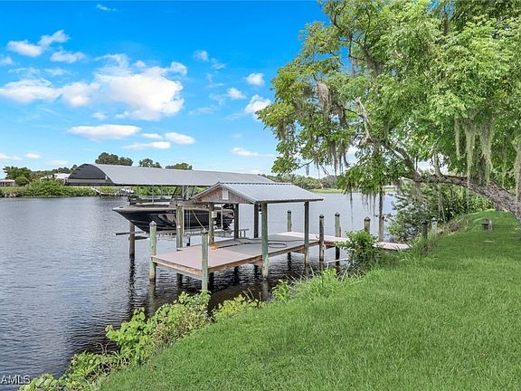 Discover a hidden gem at 639 Live Oak Lane, nestled in the peaceful, riverside community of LaBelle, Florida. This exquisite 4.3-acre estate offers a perfect blend of elegance, privacy, and nature’s beauty, providing 239 feet of frontage along the scenic Caloosahatchee River. Designed for both luxurious living and outdoor enjoyment, this stunning property boasts a wealth of modern amenities and upgrades that make it a rare find. The main residence spans over 3,200 square feet, with 4 bedrooms and 3 full baths, thoughtfully designed for comfort and sophistication. Two master suites, including a ground-level suite with a walk-in shower, soaking tub, and dual vanities, as well as a grand second-level master with a private balcony, wet bar, and elegant bath area, offer peaceful sanctuaries to unwind. The newly remodeled gourmet kitchen features top-tier appliances, a gas range, and quartz countertops, ideal for the home chef. Family and dining rooms with breathtaking river views provide the perfect backdrop for both intimate gatherings and grand entertaining. Significant upgrades to the main house ensure modern comfort and peace of mind, including hurricane-impact windows, installed in 2017, and a moisture protection system beneath the home. A new HVAC system and ductwork, installed in 2020, along with custom cabinetry, marble flooring, and premium fixtures in the bathrooms, highlight the home's recent renovations. Composite decks at the front and rear of the house, updated air conditioning systems, and security cameras further enhance the property’s charm and security. The estate extends its luxurious offerings with a charming Carriage House, complete with an apartment and full bathroom. A workshop, tandem garage, and storage shed provide ample space for hobbies, tools, and additional storage. Outdoors, the meticulously landscaped grounds feature meandering walking trails lined with Banana, Orange, and Lemon trees. Enjoy serene walks to the river’s edge along a palm-lined walkway. The waterfront is an absolute showstopper, with a covered dock boasting Trex decking, a 16,000-lbs lift with wireless remote control, and both water and electrical hookups, perfect for boating enthusiasts. Security and convenience are also prioritized with an electric gate at the entrance and a 250-gallon buried propane tank, which supports multiple areas of the property and can be connected to a future generator via whole-house generator hookup, ensuring preparedness for any situation. Built originally in 1961, this home has been extensively updated to offer all the modern conveniences while retaining its original charm. With its unmatched combination of location, amenities, and modern upgrades, 639 Live Oak Lane is truly a rare find in LaBelle. Whether you're seeking a serene escape or a place to entertain and enjoy outdoor activities, this estate offers it all.