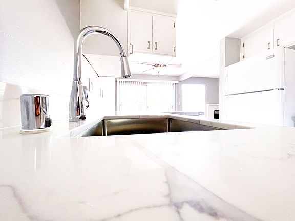 Kitchen with new countertops, freshly painted cabinests, newer oven/range, dishwasher, disposal and designer faucet