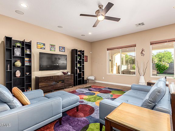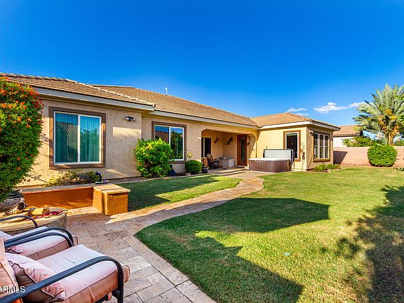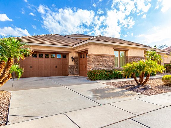 Welcome to your dream home in the heart of Fulton Ranch! This stunning single-story custom residence offers 5-bedrooms & 3.5 baths across 4,168 sqft of beautifully designed living space. As you enter, you'll appreciate the sense of openness created by the 10-foot ceilings, abundant natural light & thoughtful layout that seamlessly connects the main living areas. This home has been meticulously maintained & recently enhanced w/ premium upgrades, including newly installed Lifetime Windows & a sliding patio door backed by a transferable lifetime warranty, a brand-new HVAC system (2023) for comfort/efficiency and solar panels. Entertainment & convenience are built in, with pre-wired surround sound, a central vacuum system & DirecTV satellite already in place. The inviting living area features a wet bar & mini fridge, making it an ideal space for gatherings. The kitchen serves as the heart of the home, offering abundant cabinetry, generous counter space & a center island that's perfect for meal prep, casual dining, or conversation. The spacious primary suite provides a private retreat with the comfort & spa-like luxury, while the additional bedrooms are generously-sized for family/guests & share thoughtfully placed full baths for ease & privacy. Step through the sliding patio doors & enjoy a backyard that's ready to become your personal oasis with plenty of room for your dream pool, an outdoor kitchen or tranquil lounge area to enjoy Arizona's sunshine year-round. Located in the sought-after Fulton Ranch community, this home offers an unbeatable Chandler location close to excellent schools, parks, shopping, dining & major freeways. Combining comfort, elegance & thoughtful upgrades, this property is truly move-in ready & designed to impress.