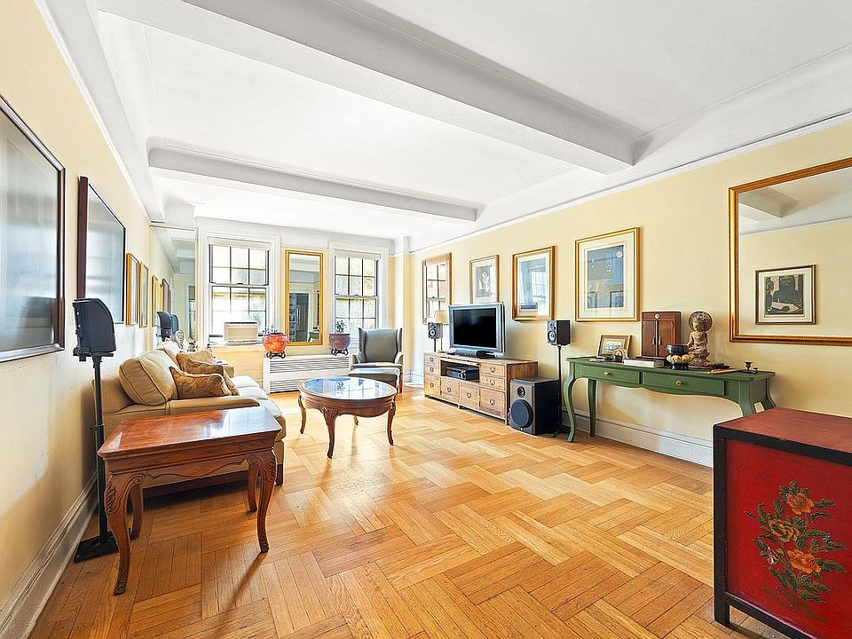 A gracious entry foyer with two large closets leads to an expansive living room with large windows overlooking West End Avenue. The living room and formal dining room are exquisite, both stretching over 20 feet, offering a spacious canvas for comfortable living and effortless entertaining. The large, bright kitchen featuring plenty of cabinetry and a large window, also has a vented washer/dryer hook-up.