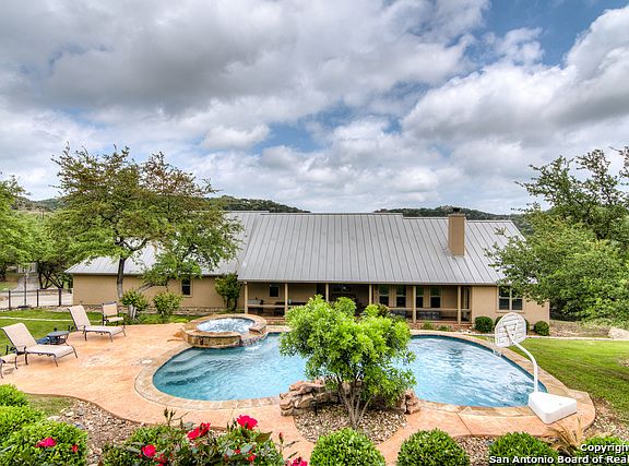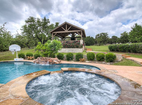 The outdoor entertainment space here is hard to beat. Separate cabana with great views of the pool and the hill country, complete with bar, grill, sink, granite counters, fireplace, etc. Single story home has been incredibly well cared for. Huge open kitchen. Large master. The media room is set up for two rows of theater seating and has a custom bar with soapstone counters. Two separate sprinkler systems. Two wet weather creeks w waterfalls. Epoxy garage floors and tons of garage cabinetry.