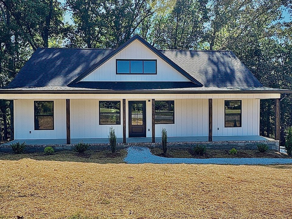 Move in ready in the heart of peaceful Midway Community! Not your everyday spec home. This adorable farmhouse surrounded by farm land has everything you could need with meaningful upgrades and so much character, too. Beautiful full length, covered concrete porch on the front, and covered wood deck on the back, both boasting stained tongue and groove ceilings. Stained tongue and groove ceilings continue into the 16 foot vaulted main kitchen/living area where you'll find plenty of space, all stainless steel appliances, and a rolling island for flexibility. Split floorplan with 2 beds, and a spacious jack and jill bath joining them on the right side of the home. Primary suite is on the left and has full glass double door access to the back porch for quiet morning coffee, an all tile walk in shower with niche and bench, and a double vanity. Lifetime warrantied windows with energy efficiency ratings, quality 50 year insulated composite board and batten siding (NOT VINYL), European Oak flooring, and custom cabinetry throughout the home. This lot has plenty of cleared space to add a fire pit or playset for the kids. Add a porch swing and some rocking chairs and you're all set! Punch list is being wrapped up now. See it today before it's gone! Builder supplies buyer with a one year warranty at closing!