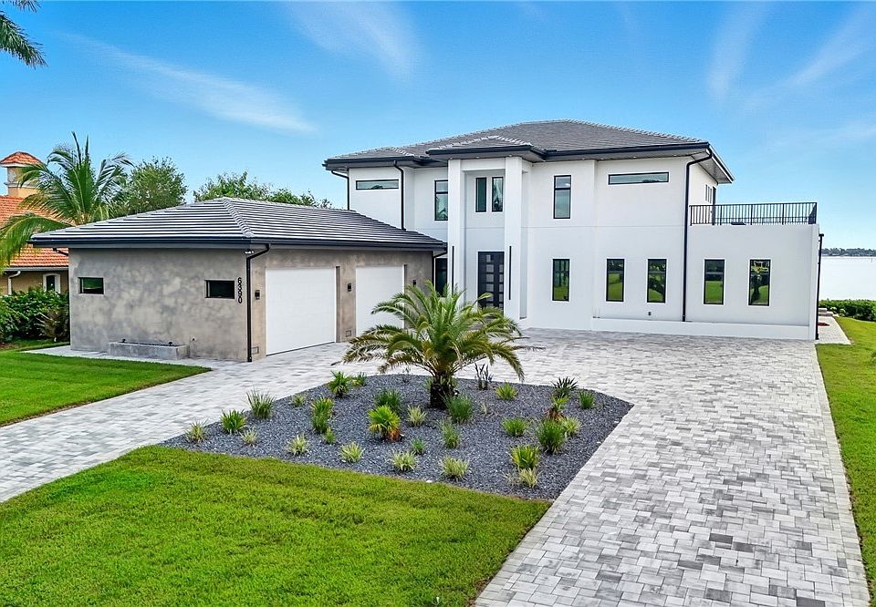 Covered lanaiSoutheastern exposureOversized four-car garageTwo expansive roof terracesBright open floor planDirect water viewsEnclosed for year-round comfort