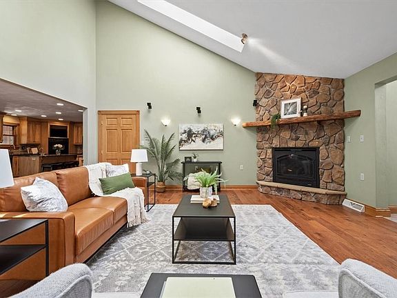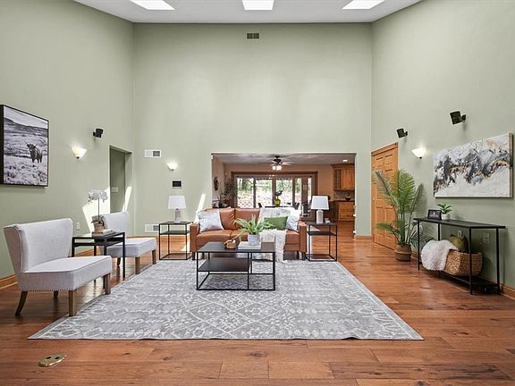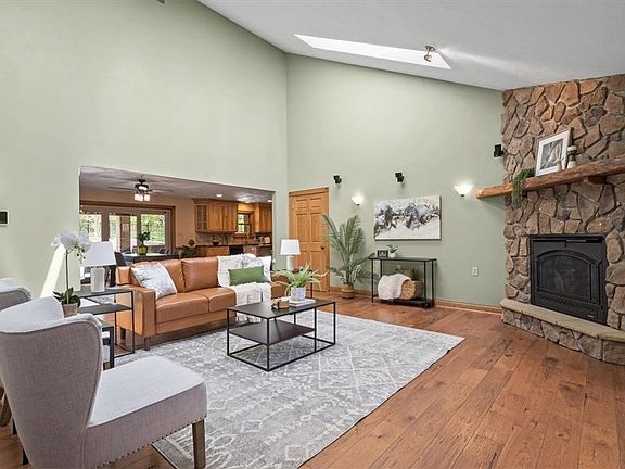 Surrounded by trees & perched upon 7.9 acres, is this beautiful 5-bedroom custom brick home w/ astonishing views. The governor's driveway overlooks the property & leads to the craftsman front door. Greeted by the warm & inviting great room w/ vaulted ceilings, skylights, stone fireplace, & rustic hardwood flooring. Peeking through the dining room, you’re drawn in as the glass doors create a picture frame of your backyard oasis. The tranquil patio provides space to relax or entertain. Enjoy the heated saltwater pool, hot tub, gas firepit, & calming koi pond. Back inside is the gorgeous kitchen w/ granite counters, double ovens, & island w/ seating & 2nd sink. 1st floor master & laundry. Movie night just became better w/ your private theater. Snuggle up on the couch or grab a seat at the bar by the 2nd kitchen & wine cooler. 3-car attached garage + lower level 40x22 garage fitting 4+ vehicles & outdoor toys. Looking for privacy, luxury, & entertainment space? Welcome home!