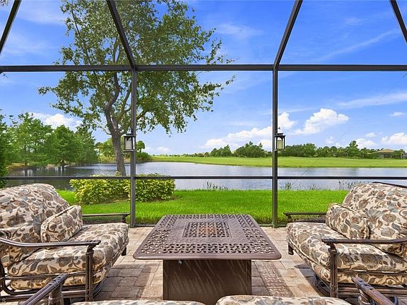 Welcome to a home that truly checks every box! Perfectly positioned on the serene WATER and 12th FAIRWAY of the prestigious Panther Run Golf Course, this exceptional residence is located in the highly desirable 55+ Del Webb Naples community. Featuring the sought-after TIFTON floor plan—comparable to the beloved MYSTIQUE model—this home offers 2 bedrooms + a den, an EXTENDED great room, and thoughtful upgrades throughout. At the heart of the home is the GOURMET KITCHEN, designed to impress with a large island, UPGRADED APPLIANCES, and custom cabinetry with PULL OUT DRAWERS—perfect for both everyday living and elegant entertaining. A lifetime Granite Shield Warranty on the countertops for lasting beauty and protection is included. Enjoy flexible living with a SPACIOUS DEN ideal for a home office, guest space, or creative studio. CROWN MOLDING, TILE and CORTEX flooring, and PLANTATION SHUTTERS elevate the home’s aesthetic, while IMPACT-RESISTANT WINDOWS and doors, along with ELECTRIC HURRICANE SCREEN on the lanai, offer unmatched peace of mind. Step into the luxurious PRIMARY SUITE, complete with dual vanities, a walk-in shower, and generous closet space—your personal retreat after a day on the golf course or enjoying community amenities. The TANDEM-STYLE GARAGE offers room for a golf cart, workshop, or extra storage. Enjoy worry-free living thanks to RECENT UPGRADES that add value and convenience—including a newer A/C unit, water heater, Bosch dishwasher, and LG washer & dryer. GOLF LOVERS —Panther Run Golf Club offers optional MEMBERSHIPS with premium golf experiences just steps from your backyard. As a proud resident of Del Webb Naples, you’ll enjoy WORLD-CLASS AMENITIES that rival luxury resorts: dine at the Rusty Putter Restaurant, soak in the RESORT-STYLE or LAP POOLS, break a sweat in the state-of-the-art FITNESS CENTER, and play your way through PICKLEBALL, TENNIS, bocce, billiards—even a top-tier GOLF SIMULATOR! Need groceries, church, or a bite to eat? Just hop in your golf cart and cruise into town—Publix and the heart of Ave Maria are just minutes away. This isn’t just a home—it’s a LIFESTYLE UPGRADE in one of Southwest Florida’s most vibrant 55+ communities. Don’t miss your chance to live where fun, fitness, and friendships flourish year-round!