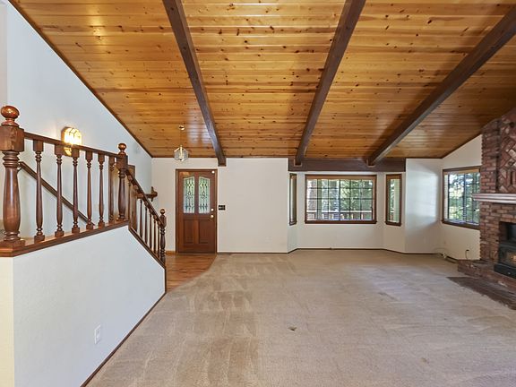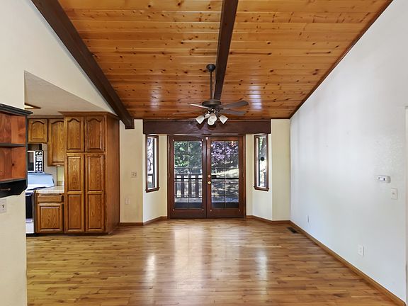 This home is located in the heart of nature, yet just a short drive from Redlands and Yucaipa. Spacious living room with high wood-beamed ceilings and wood-burning stove. Open floor plan perfect for entertaining. There is a downstairs room that could serve as a guest room, office, or hobby space. Inside laundry room and full bath is located on main floor for easy access and convenience. There is a large bedroom located upstairs that can easily be divided into two separate spaces and featuring dual closets. The primary bedroom features wood burning fireplace, dual French doors which leads to a private deck with stunning mountain views. The huge backyard is perfect for outdoor gatherings, gardening, or simply enjoying the fresh mountain air. The two-car garage with a flat driveway offers plenty of parking and storage space. Surrounded by pine trees and views. Rent includes water.