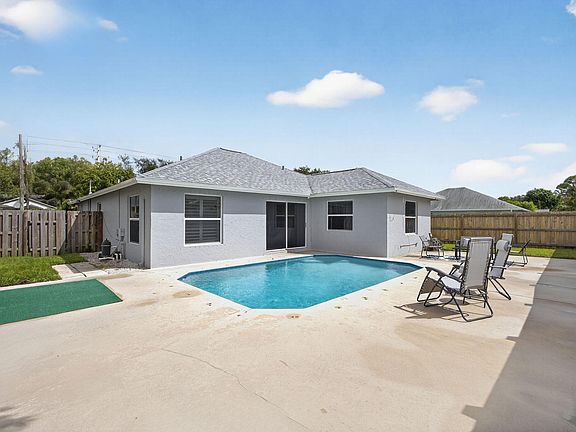 Welcome to this beautifully maintained pool home in the heart of Jupiter's sought-after North Palm Beach Heights!This 3-bedroom, 2-bath single-story home blends comfort, convenience, and classic Florida living. Step through the covered entry and into a bright, open floor plan where natural light flows across tile flooring throughout. The spacious living and dining areas feature vaulted ceilings and plantation shutters, creating an inviting atmosphere ideal for relaxing or entertaining.The kitchen sits at the center of it all -- equipped with stainless steel appliances, plenty of cabinet storage, and a long breakfast bar overlooking the living area, perfect for gathering with friends and family. The primary suite offers a quiet retreat with a walk-in closet and a private bath, while the additional bedrooms feature engineered laminate flooring and new blinds for a clean, modern look.