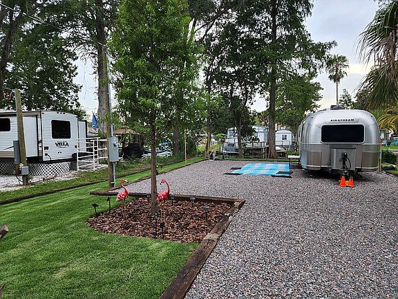 This is a 50 x 95 lot that has been set up as a trailer site. It has railroad ties creating a flag shaped RV pad that is 35'W x 40'L and a 20'W x 40'L driveway. It has a crushed concrete base with a clean mini Tahitian granite over it.