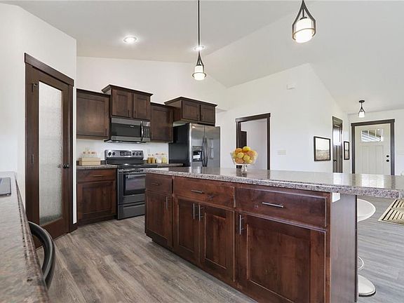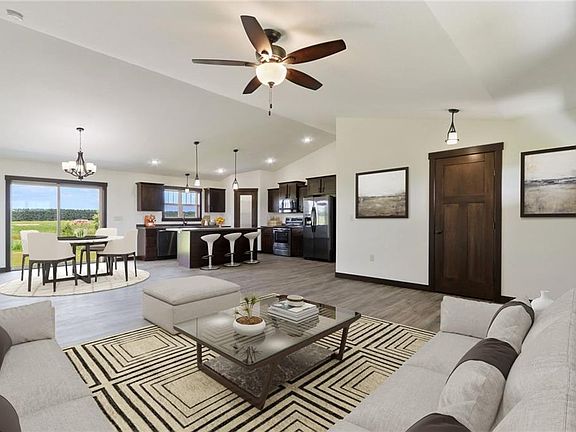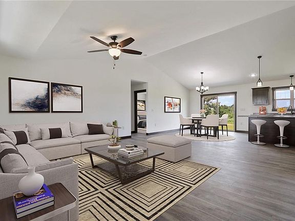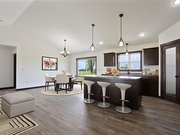 This brand new construction, zero-entry home is located just minutes from Chippewa & Eau Claire, welcome to Lafayette's Lemay Acres. This quality-built, move-in ready home by Chippewa Valley Contracting, LLC, offers open-concept living, first floor, dedicated laundry, mudroom w/paneled wall & hooks, primary ensuite, jack-and-jill bedrooms & 2nd full bath on main with room for future expansion in the unfinished lower level. Large windows throughout & quality floor coverings & cabinetry.. Main level great room with vaulted ceilings is perfect for entertaining or family life and the never-ending island in the spacious kitchen is a dream come true! Nicely-sized 3 car garage & large, 1.07 acre lot for expanded outdoor living & potential toy shed! Property includes concrete driveway, stone around house, seeded lawn & irrigation. *Finished photos depict similar finish selections & have been virtually staged. Completion to be end of June.