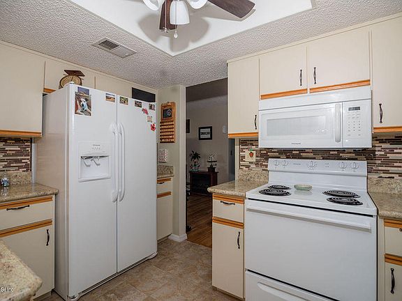 IMMACULATE 2/2 home in desirable Spruce Creek subdivision. Relaxing covered front porch leads to a nice family room, dining room AND spacious living room with double pane glass/insulation for energy efficiency. Kitchen features decorative back-splash and under cabinet lighting. Bedrooms each include a large walk-in closet. Master bath has a raised toilet and a walk-in shower with newly renovated tile and shower door. Ceiling fans throughout, indoor laundry room, open back patio, fenced yard and shed with concrete walkway and foundation. New roof in '06, newer flooring, Move in condition. A MUST SEE!