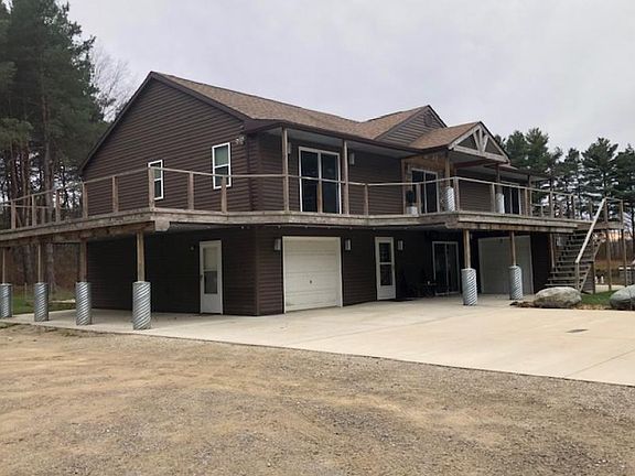 Private retreat! No need to travel far to get the "Up North" vibes! This beautiful custom industrial rustic home is ready for you! Featuring 20 acres of beautiful wooded property a mere 5 minutes from town. Large stocked pond with dock to going fishing on or cool off in the hot summer days. Wrap around deck features recessed lighting with outdoor speakers perfect for watching the sunsets or sipping coffee while the sun comes up. Lower level features one bedroom and bath. Custom lighted bar, surround sound stereo, pool table, a place for darts, card table and two TV's that stay with the home. One car finished heated garage, plus a heated finished motorcycle/side by side garage, or this area could be used as a great place to keep the fur friends comfy while away from home. Upper level is an open floor plan, custom stone accents, with beautiful views from every angle. Kitchen is open so you can stayed connected while preparing meals or snacks. Second bedroom with a bath next to it. Master bedroom features large walk in closet and a spa inspired bathroom. Come see this masterpiece for yourself, you will not be disappointed as attention to detail is seen all over this home. Call to day for your showing!