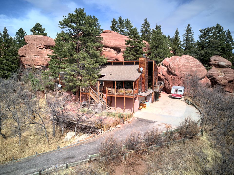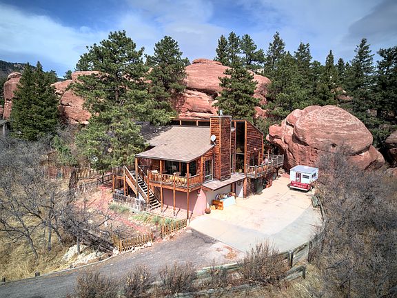 Do not miss this stunning home with breathtaking views of nature. The home is nestled within the Red Rocks. Gleaming wood floors greet you upon entry. Beautiful wood trim work and a spacious, open floor plan. Step out onto the decks and take in the truly amazing views with your morning coffee. A gorgeous rock fireplace in the living room helps to keep the interior warm and cozy during the chilly Colorado evenings. Open loft on the upper level! Kitchen comes complete with all appliances and a tile back splash. Dumbwaiter installed for convenience. This home has income potential as well! The lower level has been finished with a mother-in-law type suite; this space could be rented out for additional income. Lower level kitchen finished with matching appliances and a subway-type tile back splash. Step out back of the home and enjoy the Red Rocks and fish pond! This is an amazing space to entertain friends and family or take a quick hike. Do not miss this home, book your showing quickly!!