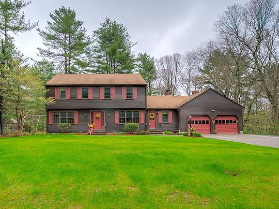 Original owner hates to leave this custom built colonial that has been lovingly maintained. Head down the long shared drive to find this tucked away and very private 4.5 acre setting. Updates abound with new stainless appliances and granite countertops(2015), updated fixtures in baths, windows and doors (2005) and 30 year roof (2000). There's room for all in this flexible floor plan that features a front to back living room, open kitchen and dining room and cozy front to back family room with fireplace and access to the deck overlooking sweeping lawns and a real playground. Large Garden shed and screen house for outdoor fun.3-4 bedrooms with the smallest bedroom now being used as an office (no closet) but originally a bedroom. Spacious, finished lower level just needs flooring to complete the perfect hang out or play space. New septic system in 2015 provides peace of mind. All this just minutes from Rt.495 and convenient to commuter rail. Please don't drive down drive w/o appointment