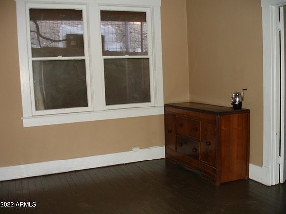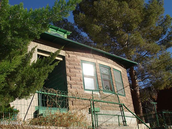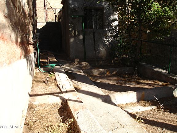 This is a very solid concrete brick home in Old Bisbee close to Brewery Gulch, Post Office and restaurants with amazing views of the area. This two bedroom, one bath features large rooms with high ceilings, a formal dining room and hardwood floors. There is a pantry off of the huge kitchen and the laundry is in a shed outback. This home does have central A/C and FAGF unlike many homes in this area.