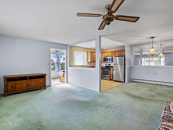 Welcome to this charming attached one-bedroom home in Holiday City Silverton, perfectly situated with serene wooded views right out back! This inviting property offers both a front enclosed porch and a back sunroom, ideal for enjoying nature all year. Inside, discover the beauty of hardwood floors hidden beneath the carpet, adding timeless appeal to the space. The kitchen is updated with sleek stainless steel appliances for modern convenience. Enjoy low HOA fees and taxes, making this home as affordable as it is appealing. This property combines comfort, privacy, and value—don't miss this fantastic opportunity!