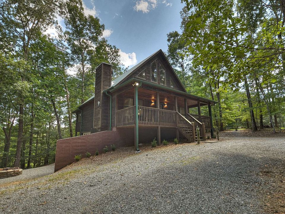 Well Maintained Cabin sitting on a total of 1.9 usable acres in sought after Coosawattee River Resort- Home sits on a peaceful Wooded Lot with Huge cleared adjoining Lot included! Cabin is being sold Fully Furnished- Beautiful tounge&groove/ all wood interior, master bedroom on the main level, full dining room, full length screened in back porch with hot tub, upper level features open loft bedroom and full bathroom. The Terrace Level is finished "recreation style" with open concept game room area that can be used as a bedroom and full bathroom. You get the best of both worlds with a cabin in the woods and the neighboring lot which is cleared for your own "private park" area with full water and power hook up! Endless possibilities for the neighboring lot- Lot is perfect to keep as a "park" with picnic tables, firepit and games, or build a pavillion for entertaining, garage with mother in law suite, or keep it open for pets or kids to play! Amenties for this Community include gated access, indoor/outdoor pools, river access, stocked fishing pond, fitness center, and much more!