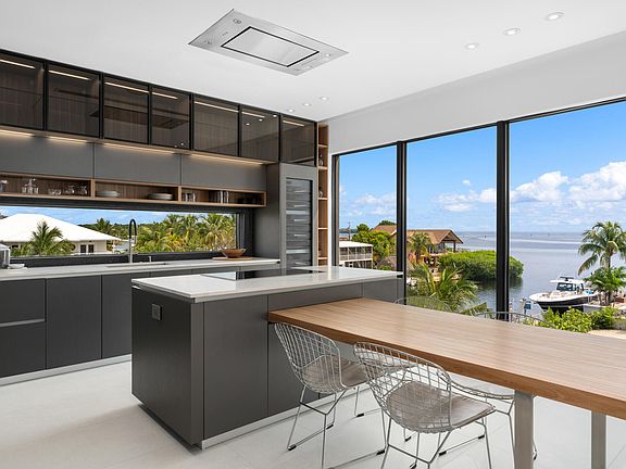 A modern sanctuary on the water, this newly built Key Largo residence blends sleek design with timeless coastal living. Rising three stories and offering six bedrooms and five bathrooms, the home spans 4,787 square feet of refined interiors and effortless outdoor living. Designed for both relaxation and entertaining, its open spaces flow seamlessly from indoors to out.From the rooftop deck and second-story terrace, sweeping views of the open ocean create an endless backdrop of blue. The infinity-edge inground pool is framed by swaying palms and tropical landscaping, complete with a sun shelf, submerged bar seating, and a bench with soothing massage jets. A covered summer kitchen on the third-floor terrace invites alfresco dining, while the 70-foot deep water concrete dock and seawall with a 20K boat lift provides room for multiple vessels, ensuring direct access to the open waters.Inside, thoughtful details abound. The gourmet kitchen centers around a striking island that anchors the main living space--ideal for casual mornings or lively gatherings. A custom glass wine storage display holds 300+ bottles in a striking, climate-controlled showcase, while a theater room offers cinematic nights at home. The versatile game room easily transforms into a full gym or private office, creating a residence that adapts to your lifestyle.A private elevator lift connects all three levels with ease, ensuring every space is accessible and convenient. Floor-to-ceiling glass doors bathe the home in natural light, highlighting the crisp lines and modern finishes throughout. With its generous scale, oceanfront vantage, and refined amenities, this home is a statement of simplistic luxury--a private retreat designed for living well on the water.