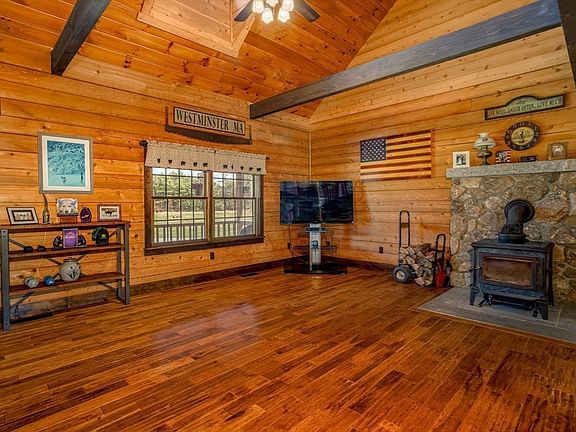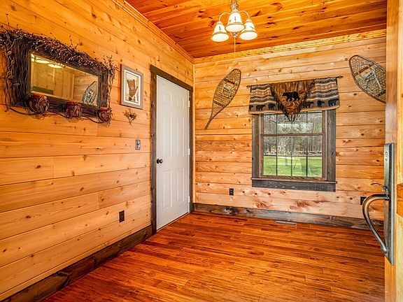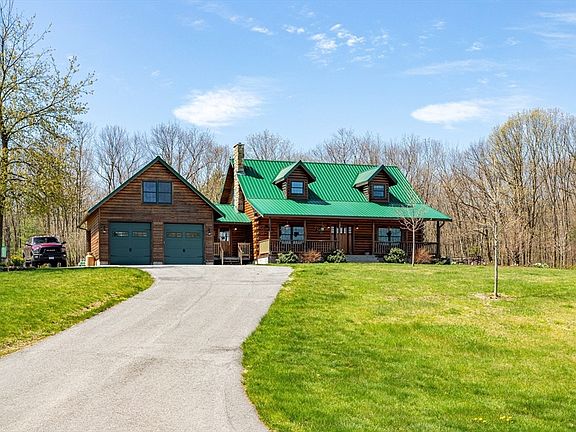 UNIQUE PROPERTY SITS ON 5.25 ACRES 3 PLUS BEDROOMS, 2 BATHS, CAPE STYLE, WESTERN RED CEDAR LOG HOME, LIFETIME TIN ROOF, FARMERS PORCH, OVERSIZED CONCRETE PAD, BRICK PATIO, CIRCULAR DRIVEWAY, PLENTY OF PARKING SPACES, LOTS OF CUSTOM WOODWORK, OPEN CONCEPT, CENTRAL/AC 2 STORY CATHEDRAL LIVING ROOM W 2ND FLOOR LOFT. WOOD STOVE, CENTRAL AC, DECK OVERLOOKING PRIVATE BACKYARD, ABOVE GROUND POOL, ATTACHED 2 CAR GARAGE OFFERS ADDITIONAL SPACE ABOVE. PERFECT FOR AT HOME OFFICE ETC. ALSO, AN OVERSIZED DETACHED BUILDING/WORKSHOP/ CONSISTING OF 1600 SQFT 2 OVERHEAD DOORS, INSULATED, HEAT & ELECTRICITY, STEEL & WOOD CONSTRUCTION 16 FT CEILING FOR COMMERCIAL VEHICLES, ENDLESS OPTIONS.PROPERTY ABUTTS TOWN LAND, OPEN HOUSE SATURDAY 5/11 FROM 12:00 TO 2:00