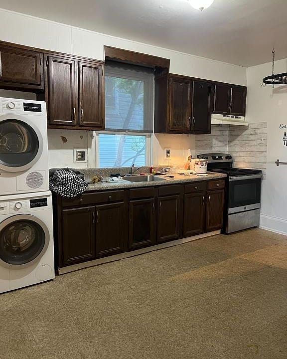 perfect for relaxing or entertaining. The unit includes a **washer and dryer