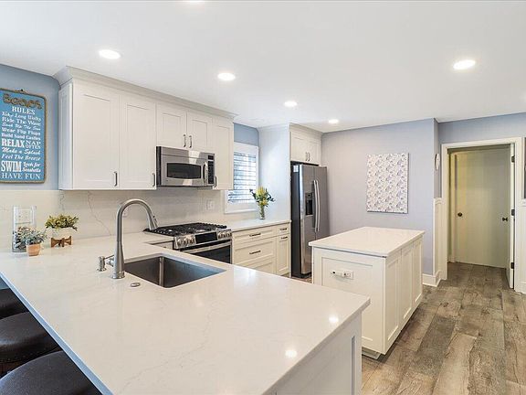 Inviting fireplaceOpen-concept layoutBright windowsFlooded with natural light