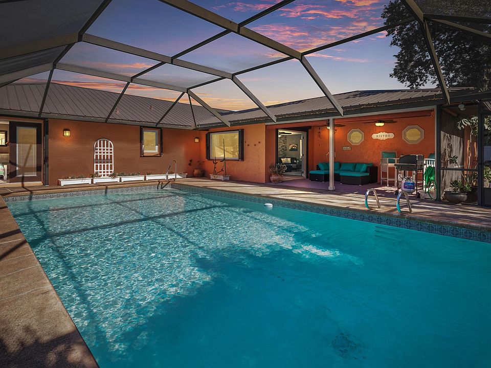 This 4 bedroom 2 bath with bonus flex room with relaxing lanai by heated pool is well set up for relaxed living. Utilities not included 12 mo, May be rented with utilities included, call for details