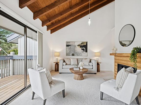 The wait is over! This rarely available 3 bedroom, 2 bathroom townhouse, offering nearly 1,600 square feet of living space plus a large outdoor patio space will check every box and more! One of only 3 units in the sought-after Miller Creek community that sits on its own little lane with guest parking and a huge front lawn area that is maintained by the HOA. With soaring, vaulted, exposed-beam ceilings plus views of majestic trees in the back, you can enjoy Tahoe vibes right here in the 94903! A wall of sliding glass doors adorn the living and dining areas, leading to a large front balcony and ushering in loads of natural sunlight. Fresh paint throughout, new carpeting, and beautiful new quartz kitchen counters make this home ready for immediate move-in! An attached garage with interior access & additional storage are added bonuses of this special property. The Miller Creek community offers a lovely pool area, tennis courts, beautiful walking paths and a children's playpark on-site. Great location, just around the corner from the popular Marinwood Market & minutes from the Marinwood Community Center with pool, waterslides & parks. Low HOA dues & the award-winning Miller Creek School District round out this amazing opportunity to make 64 Blackstone Drive your new home-sweet-home!