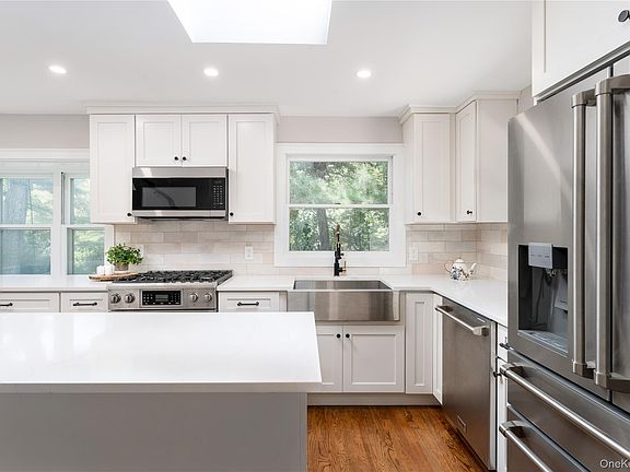 Completely renovated farm ranch in Stony Brook Village! This LOW MAINTENANCE home features a first level primary suite, beautiful hardwood floors throughout the entire house, and completely updated kitchen and bathrooms. New LED recessed lighting throughout the house matched with oversized windows offers a ton of natural light. The wood burning fireplace and custom built ins give you the perfect comfortable but modern feel. The kitchen has white shaker cabinets with quartz countertops , Thor appliances, gas cooking, and rear deck access. You also have an office on the first level for work from home convenience. Upstairs offers a great loft space, another full bathroom and bedroom. You also will find updated gas heating and central air conditioning. You are located just minutes to all that SBV has to offer and TOB community beaches.