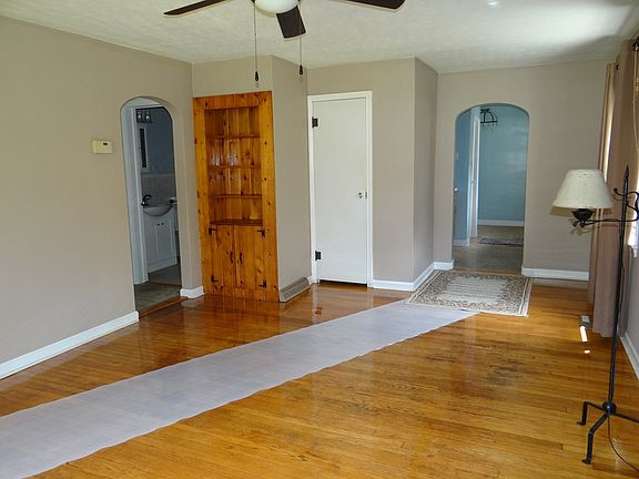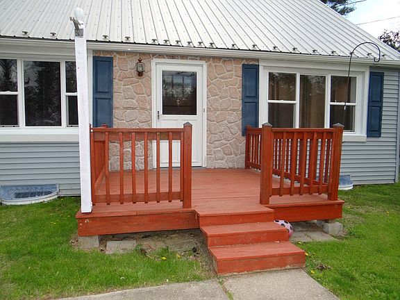What a great home! 3 - 4 bedrooms, family room w/ woodstove, living room with freshly refinished hardwood floors, kitchen with oak cabinets and appliances. Front deck with fenced in yard area. Back yard has a covered patio and an open concrete patio (perfect for a pool or gazebo - electric is there). Single car detached garage. Metal roof on home, garage is shingled. Shed in back. Move right in. Not all bedrooms have closets.