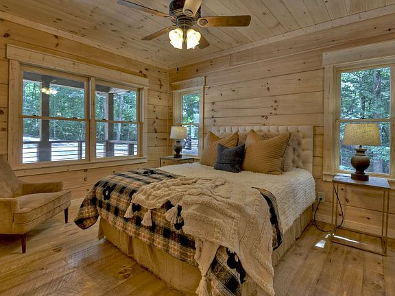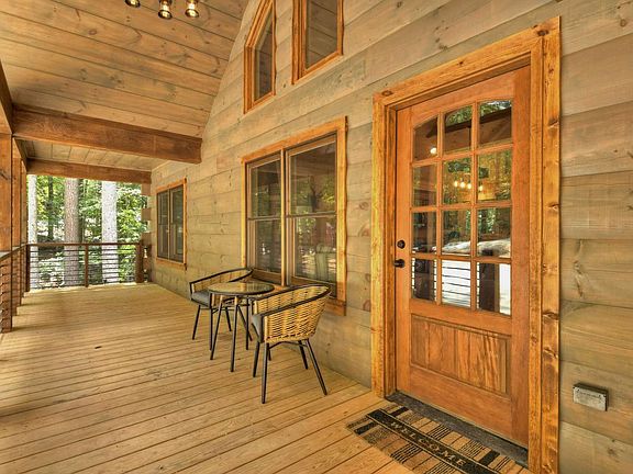 WELCOME TO THIS BEAUTIFUL AND TRANQUIL NEW CONSTRUCTION TRUE LOG CABIN! Beautiful wood finishes throughout including circular saw hardwood flooring and cabinetry. Sandstone granite countertops and unique rustic lighting help give this cabin a mountain touch you will fall in love with. Lots of windows provide natural lighting that showcases the detailed finishes such as a rock fireplace that extends to the beamed ceilings with a large, open living area. This home boasts large, oversized, covered porches with vaulted ceilings, as well as a stunning, large, stone fire- pit area to enjoy the private backyard area. Enjoy this large, private lot close to downtown Ellijay. Vacation rentals allowed, and lots of amenities in this popular gated community! Please note that home is to be completed in March and most pictures are representative of the completed home and finishes that will be included.
