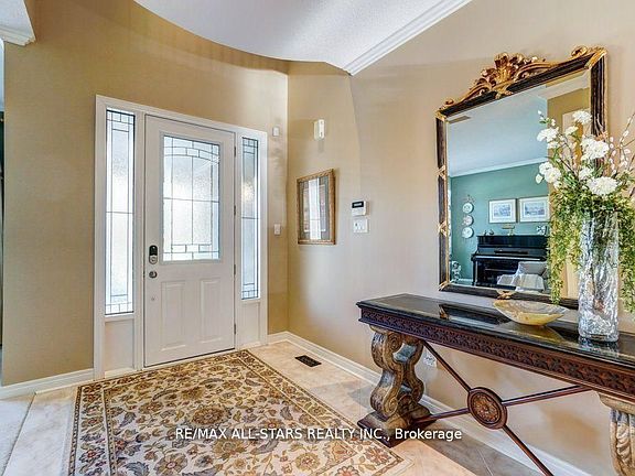 Set in one of Uxbridge's most coveted golf course communities, this exceptional 3-car garage executive home blends luxury, lifestyle, and an unbeatable location. It backs onto lush green space & forest, with direct access to scenic trails and within walking distance to shops, schools, and town amenities. Upon entry, the main floor impresses with 9' ceilings and crown mouldings throughout with a dramatic 2-storey foyer open to the upper level. The living room features large bow windows and California shutters; the formal dining room is accented with a coffered ceiling & pillar columns. The open concept gourmet kitchen offers custom cabinetry, granite counters, a tumbled marble backsplash, s/s appliances with counter cooktop, built-in oven, microwave & warming drawer, hardwood floors, and a 3-sided gas fireplace connecting to the family room featuring custom built-ins. Double garden doors with a retractable screen leads to a large deck with forest views. Upstairs, the primary suite includes double entry doors, a walk-in custom closet, & a 5-pc ensuite with a Jacuzzi tub. Two bedrooms share a Jack & Jill 4-pc bath, while the fourth offers its own ensuite, bay windows with a vaulted ceiling & built-in desk area. The bright, walkout basement includes oversized windows, a kitchenette with custom cabinetry, an eating area, dishwasher, sink, and fridge; plus a rec room and play area perfect for in-laws and extended family. The playroom features a large above-grade window and could easily be converted into an additional bedroom (by adding one wall) offering excellent potential for a full in-law suite conversion. Walk out to a covered patio and professionally landscaped backyard with a sprinkler system, hot tub, deck with lighting, and mature gardens. Additional features include: Nest thermostat + doorbell, privacy fencing with gate access, 2018 furnace & AC, 2017 shingles, 200 amp service, water softener(owned) & a professionally landscaped front yard with sprinkler system.