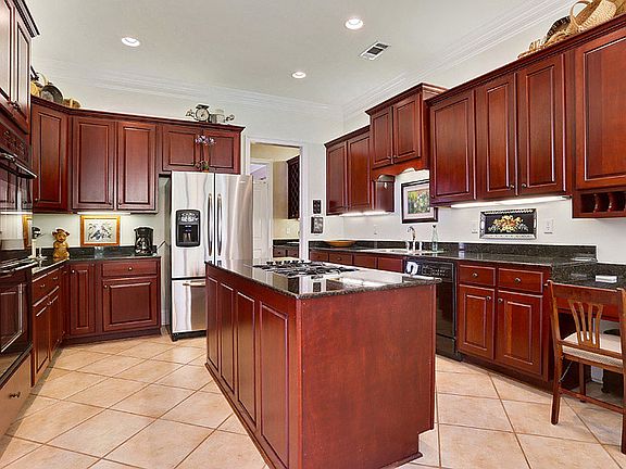 Great house with all the rooms you need.Mstr plus another bedroom & bath & half bath down.Up:3 bdrms,2 full baths,office & large gmrm.Large foyer with impressive turned back staircase.Wood flrs in dining & foyer.Great millwork moldings & cased openings throughout.10' ceilings down,9' up.Great kitchen with granite counters & numerous custom wall cabinets,center cooktop island,planning desk,double ovens.Huge 17x12 dining will fit large furniture.Large laundry.Storage rm with AC.Huge rear yard.3 fountains.Wow!